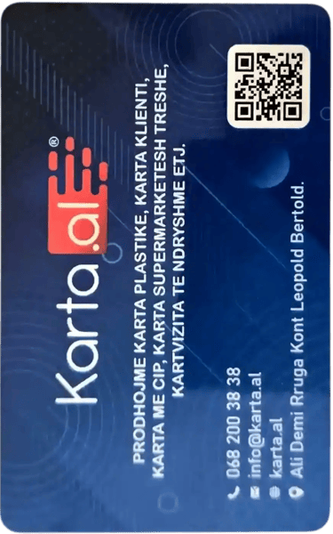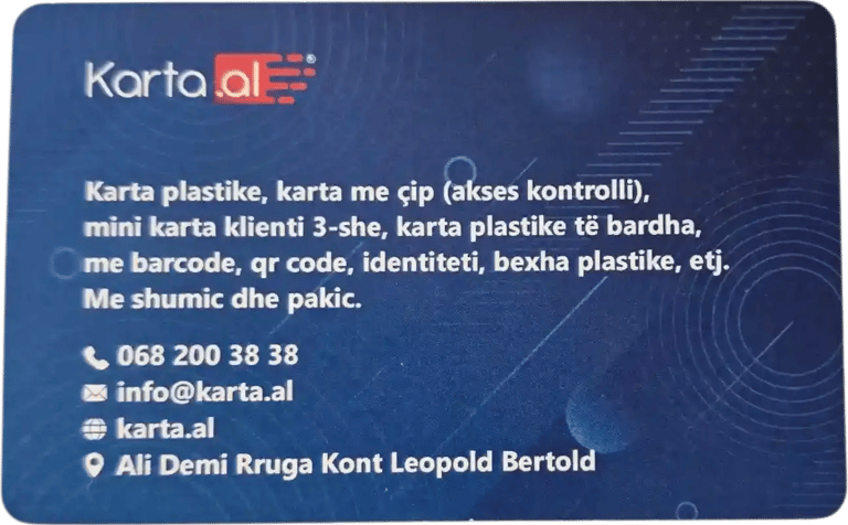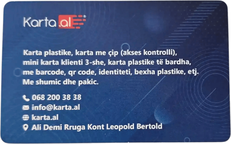 Madhësitë: 90×50 mm, 85×55 mm ose sipas porosisë